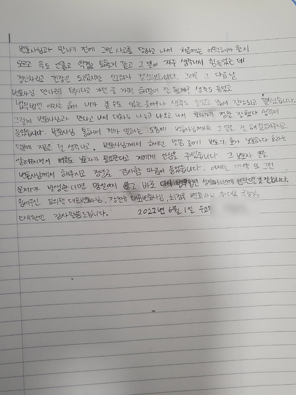그렇게 변호사님과 만나고 나서 대화도 나누고 나오고 나서